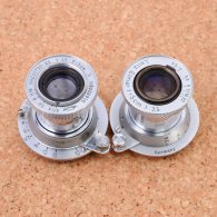 INDUSTAR-22(左)の外観は、ライカのエルマー(右)をコピーしているようだが、構造はエルマーではなくテッサーに近い。造りはライカの方が圧倒的によい。