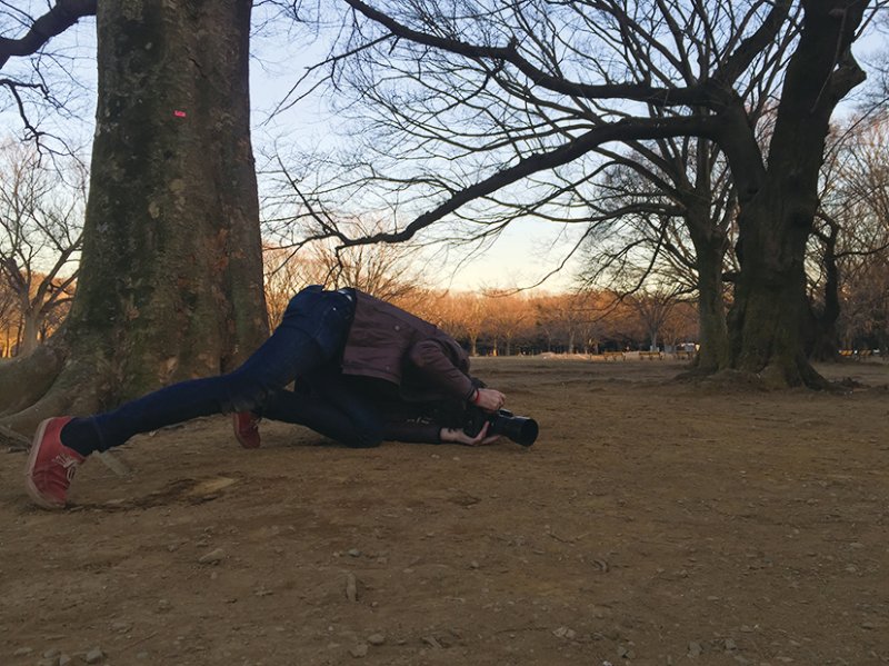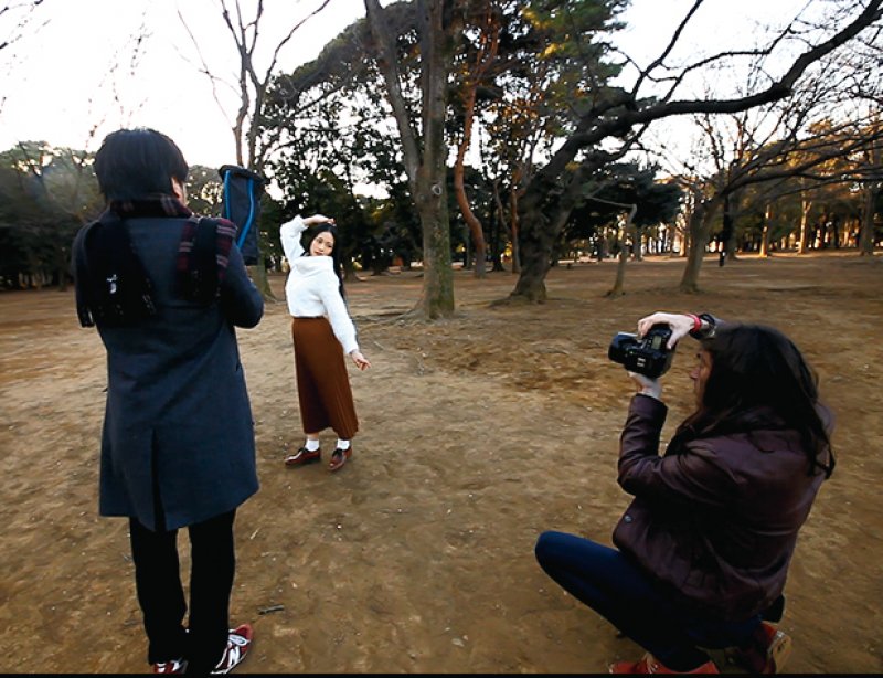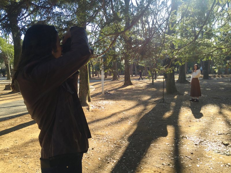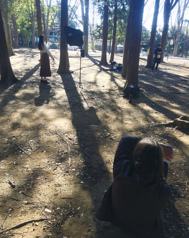 公園の中にある雑木林を最初のロケーションに選んだ。影を作りやすいという理由もあるが、初対面のモデルを撮る時は最初にスタンダードな背景を選んだ方が、どんな子かを観察しながら撮るのに集中できる。