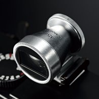 | | 純正の外付けファインダーが付属していた。眼鏡常用の筆者には辛いが、接眼部を回すとファインダーの角度を変えることができ、距離による誤差を補正できる。