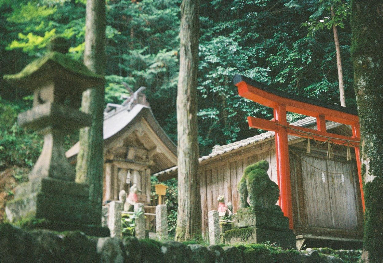 玉造湯神社のある「玉造」は、三種の神器のひとつ「勾玉(まがたま)」の生産地として有名な場所。願いを叶えてくれる「願い石」がある、この神社の境内を吹き抜ける心地よい風をとらえたくて、leotaxの柔らかな滲みが神秘性を醸してくれるよう撮影しました。