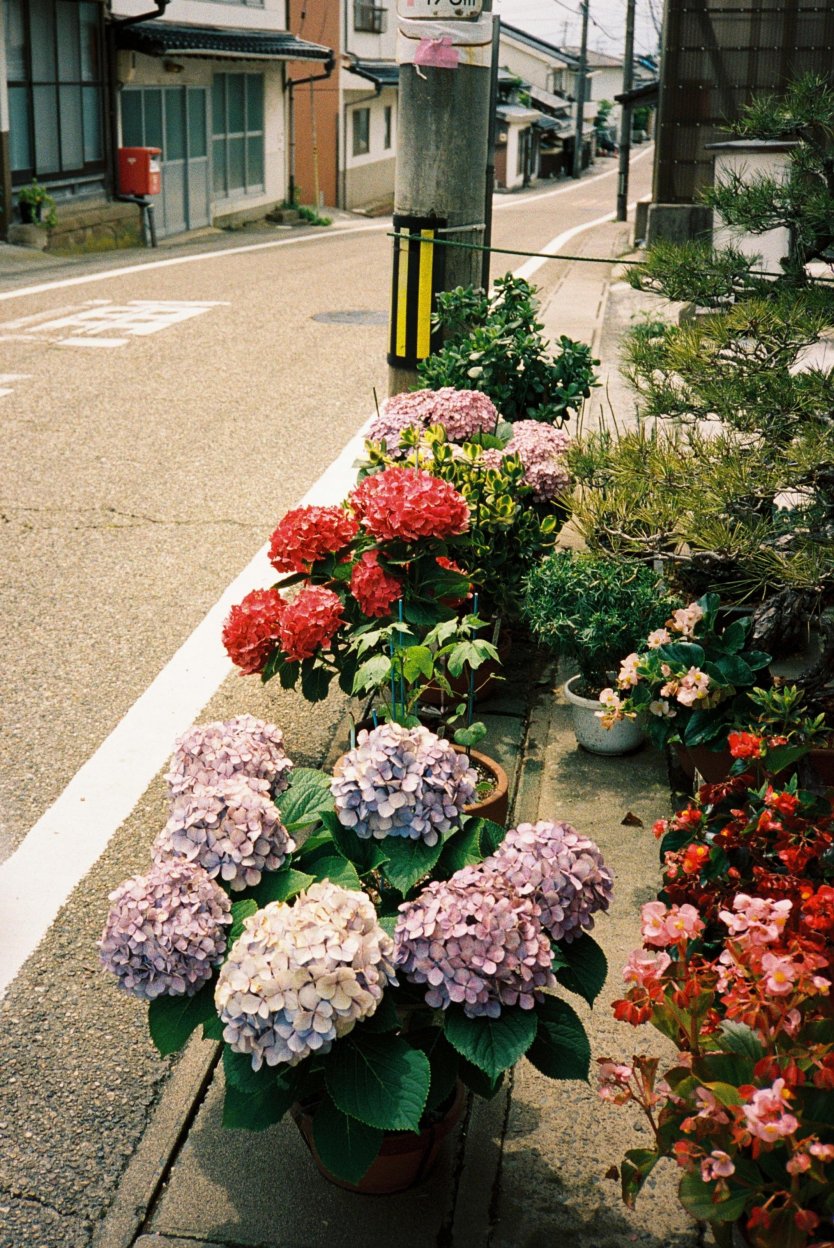 XAは、比較的色をはっきりと出してくれるので花を撮るときには、特に鮮やかなものがよく映えます。紫陽花の奥の道も撮影することで、コントラストが際立つようにしました。