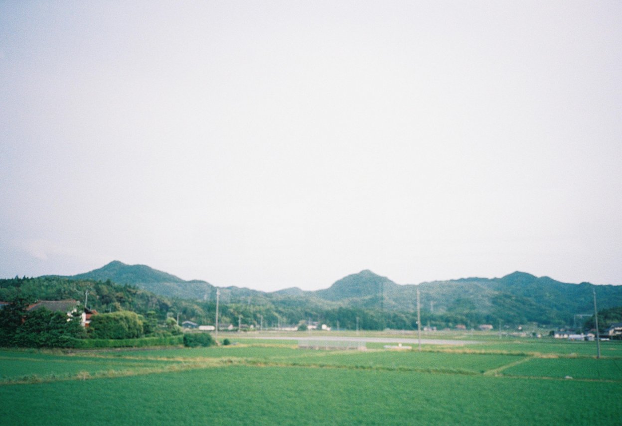 玉造から松江へ向かう途中の一枚。豊かな自然を感じながら、車窓から見える大山を撮影しました。午前中の光が差し込んでいたので柔らかな写りになっています。