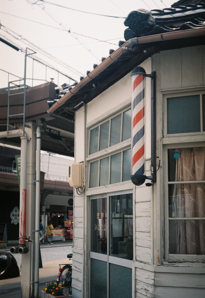 商店街で見つけた理髪店。昔ながらの木造の佇まいに風情を感じ、シャッターを切りました。
