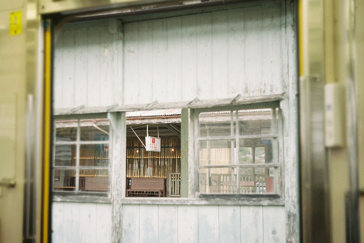 「窓から覗く駅のホーム」秩父鉄道で、御花畑駅から長瀞駅にある「寶登山神社」へ向かう途中。木造の駅のホームに味わいと雰囲気があります。電車のドアが開いた瞬間に、ホームの奥を撮影。フレームが重なっている様子を撮ることで、奥行きを表現してみました。