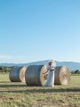 1枚目は石狩の農場。牧草ロールとともに撮影した写真です。牧草は刈り取った後、天日干しにして、その後すぐにビニールを被せて出荷されていきます。そのため、牧草ロールを撮影できるタイミングは限られていて、刈り取った後は端に寄せてしまうそうですが、農家の方に交渉し、撮影を終えるまで程よい間隔で置いていただきました。