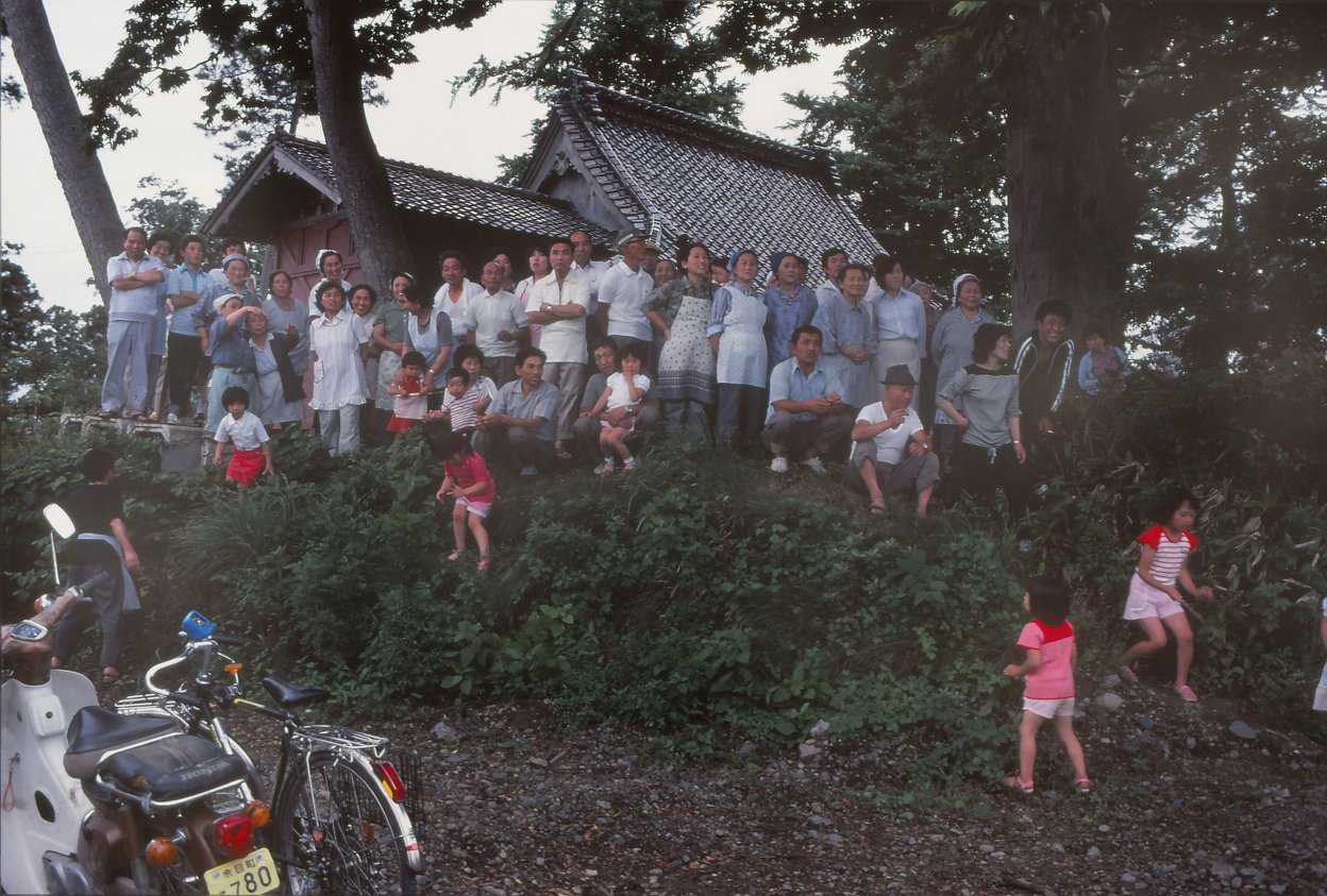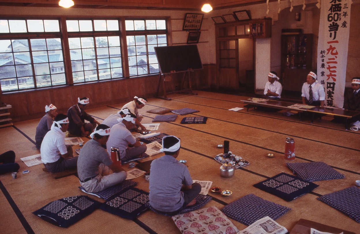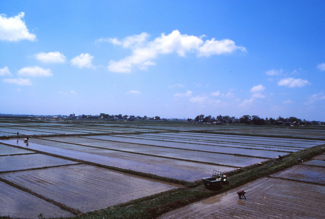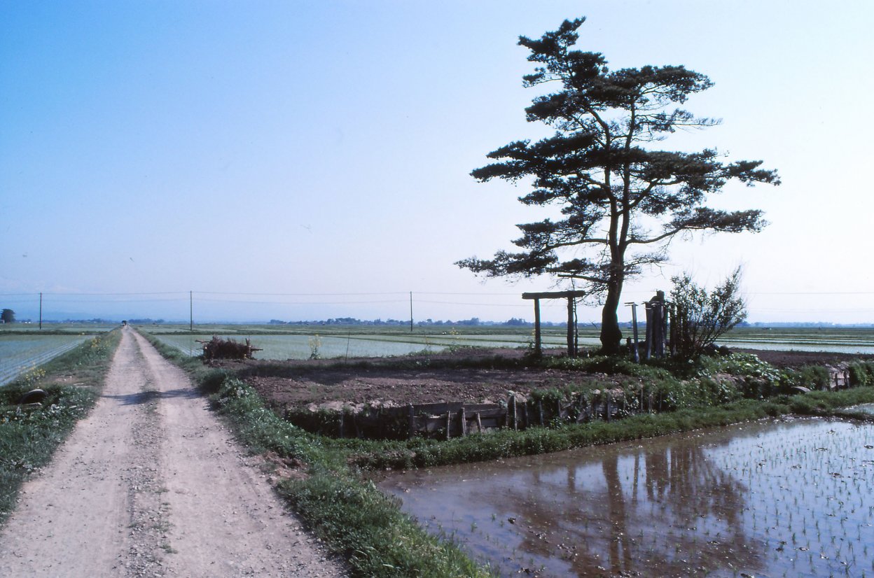 70年代私は主に山間地の小さな村を歩いてきましたから、水田が一面に広がる大平野の風景は始めてみる「農村」でした。遠くに田植機がぽつんと動いてるのをぼんやりと眺めながら、雑誌企画のテーマ「減反」問題をどう写していけばいいのだろうかと考えていました。写真は考えてどうなるものではない。見ることと感じることの積みかさねの中にテーマが見えてくるのではないか。とにかくコメを作る人に会おうと、広大な水田がひろがる中に点在する集落を巡ることにしたのでした。