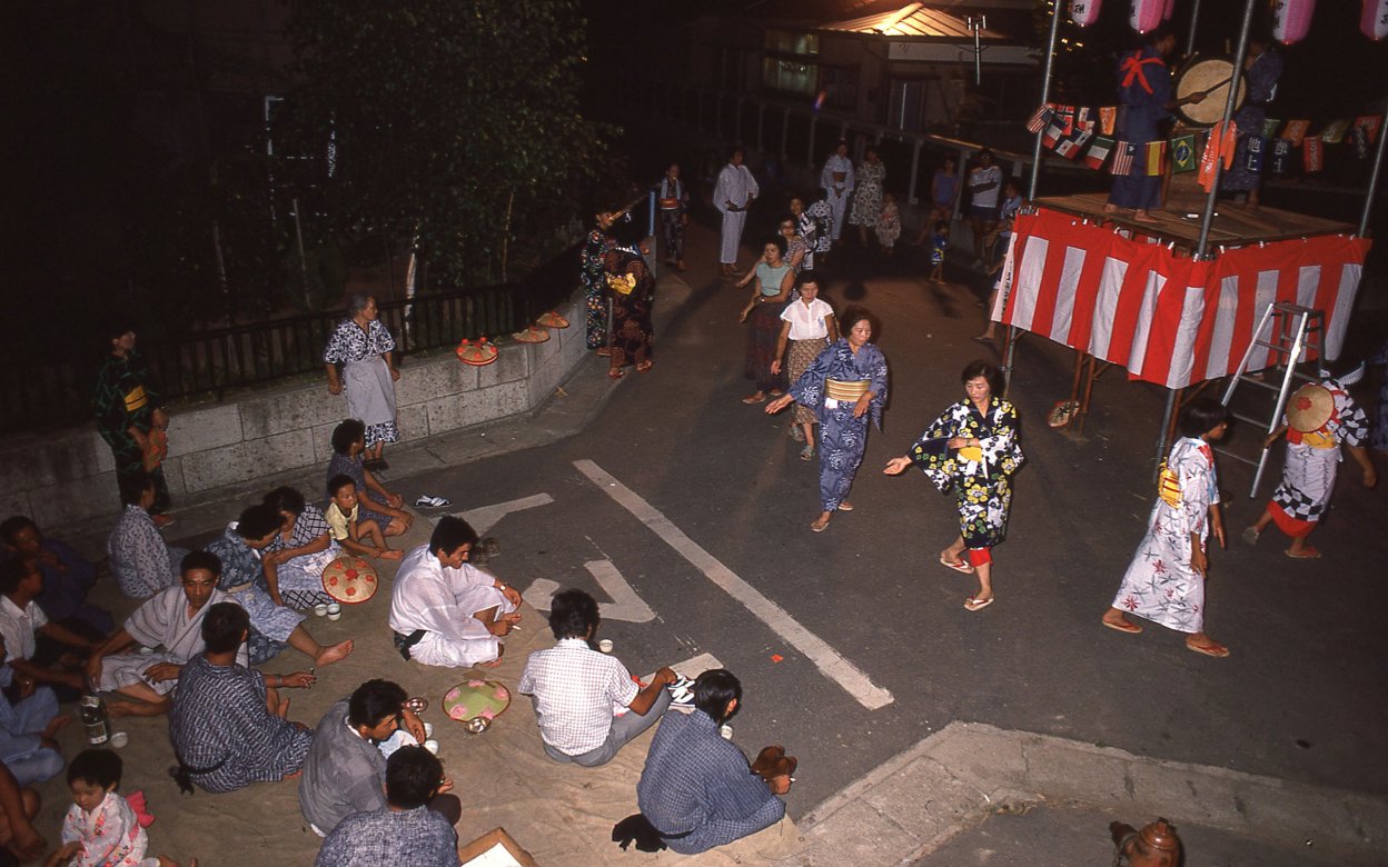 お盆の季節は帰省した人たちで、むらは一気ににぎやかになります。各集落では盆踊りが開かれ、ある集落の盆おどりの場でお酒をいただいていると、おどれ、おどれと引きずり込まれて、見よう見まねの花笠音頭。盆踊りは眺めたことはあるけど参加したことはない。スジがいいよ、などとおだてられるものだからお調子者の私はついいい気になって手を振り続け、ぐるり2回りするとすっかり酔いが回ってふらふらになっているのでした。