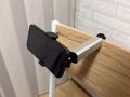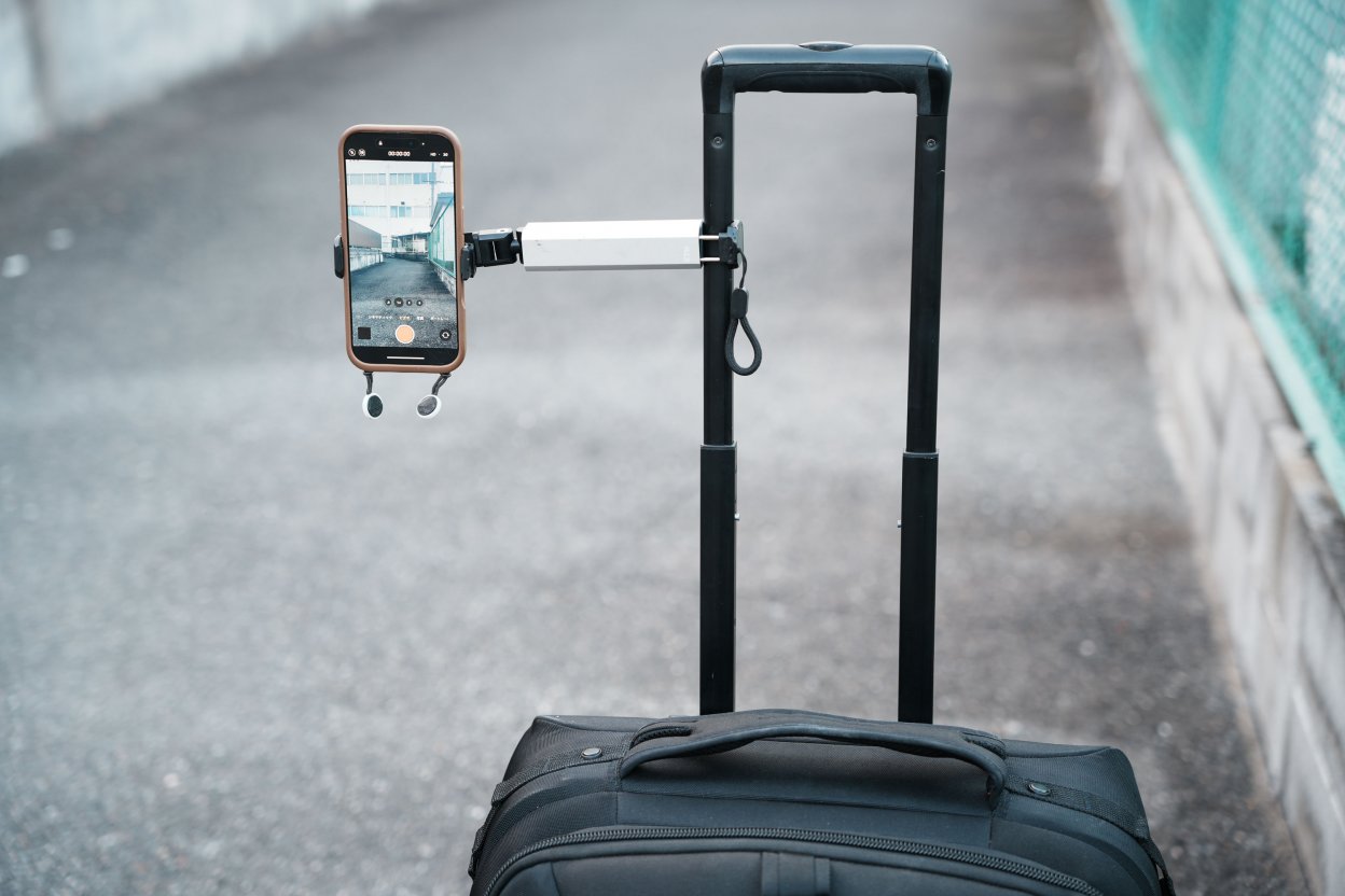 スマートフォン用の大きな三脚を別で持っていくと荷物が増えてしまうため、手のひらサイズで、キャリーバッグの持ち手に取り付けることができるこのホルダーを導入しました。とてもコンパクトに収納することができ、縦構図でも横構図でも楽に切り替えて使うことができます。また新幹線内でホルダーをテーブルに引っ掛けて、スマートフォンで映画やアニメを楽しむこともできて助かっています。 ホルダーに取り付けたスマートフォンで撮影した裏側動画