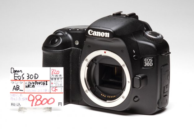キヤノンEOS 30DEOS二桁モデルの5代目となるカメラである。有効820万画素CMOSセンサーに2.5インチの液晶モニターとスペック的には古さを感じさせるものの、その絵づくりはピクチャースタイルの採用などで現行EOS 60Dと変わることがない。EOS 30D の採用するEFマウントはフランジバックの短さから、一部の他社製レンズの装着を可能としている。そんなマウントアダプター遊びを手軽に楽しみたいデジタルユーザーにも最適な一台だ。