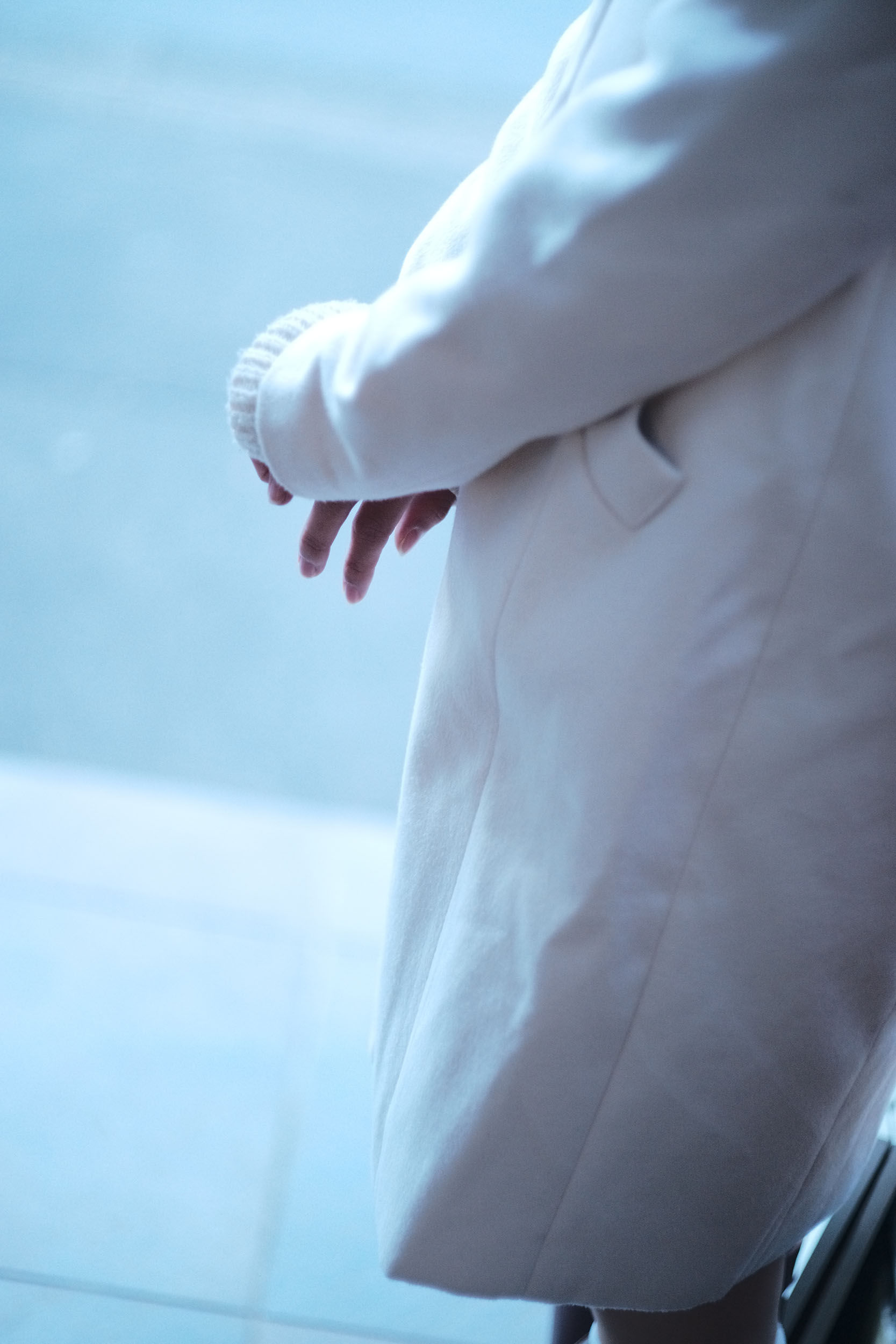 撮影は知り合いのギャラリーを借りて行う予定にしていた。その白い箱の中に入る前に、勿体ぶるように青色を重ねる。まだ硬い表情がプロローグを演じ、来るべき白い世界への期待を昂らせていく。
