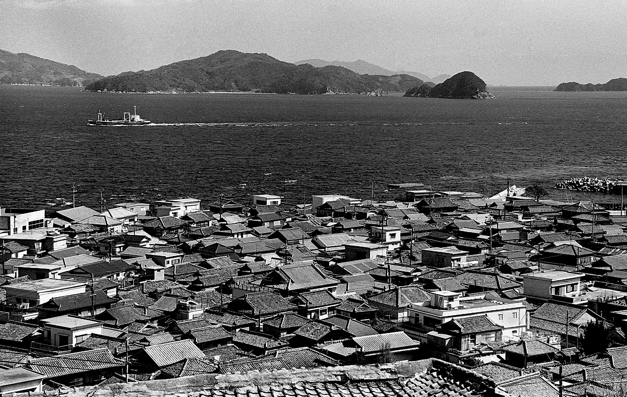 1970年代から日本各地の海辺を巡る旅を続けているのですが、70年代に出かけた場所は海洋汚染の社会問題を抱えた地でした。問題意識を持った「取材者」としてではなく、ふつうの旅人として海の景色を眺めていたい、と思ったのは1980年に入ってからのこと。庄内平野通い(アーカイブ 第9回・第10回)を続けている時、日本海にある「飛島」へ酒田港から定期船で1時間10分ほどで行けると聞いて、田んぼを離れてふらりと出かけたのでした。島には海辺に沿って家々が並ぶ3つの集落があり、小さな船が漁港を出入りしていて、海辺では水揚げされた魚を選別していたり網の手入れなどをしている人がいる。カメラを手にした見知らぬお兄さんが気になるのか少年が近寄ってきて、カメラを渡して使い方を説明すると興味津々真剣に聞き入っている。カメラを持つ少年の手の動きを見ながら波の音とウミネコの鳴き声だけを聞いている。ありふれた漁村のありふれた島の光景を眺めて、ふらりふらりと海辺を歩いただけの滞在3日間でした。帰りの船ではずうっと水平線を見ていて、日本の海を巡る旅のプランが浮かんだのです。小さな島の小さな漁村の暮らしにふれることから始まった新しい海への旅は、大型漁船が集結する漁港や工業都市の波止場風景、観光地の絵葉書になるような絶景の海辺なども通り過ぎることになるのですが、日本の海辺の風景はどこへ行ってもわくわくぞくぞくするのです。1990年代初めの写真を中心に構成してみました。(飛島、佐渡、深浦町1980・81年)