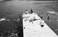 海に潜って何やらとっていた男がふうっと浮き上がってきて船のほうに向かって「シャチョー」と叫んだ。シャチョーと呼ばれた男がとことこやってきた。輸送船の船長だった。島を巡って魚やモノを運ぶ仕事をしている。午後になって、その船は子供たちの遊び場になった。船の高い所から女の子たちが次々に海へ飛び込んでいくのだった。あ、また飛び込んだ。男の子も負けじとドボン。あちらこちらからドボン、ドボン。「いくつから港で泳いでるの?」「一年生」「毎日泳いでるの」「うん」。子どもたちの表情がじつにいい。私の少年時代は山と川が遊び場だったが、こんなにいきいきとしていただろうか。夕暮れになって、子どもたちが家に帰るころまで港にいた。