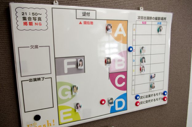 ![]() | モデルが順番に目線をくれるため、モデル撮影会でありがちな「大きな声を出した者が勝ち」ということはない。 近寄って撮りたければ、周りの参加者に注意しながら、交代で前方に出れば良いだろう。 |