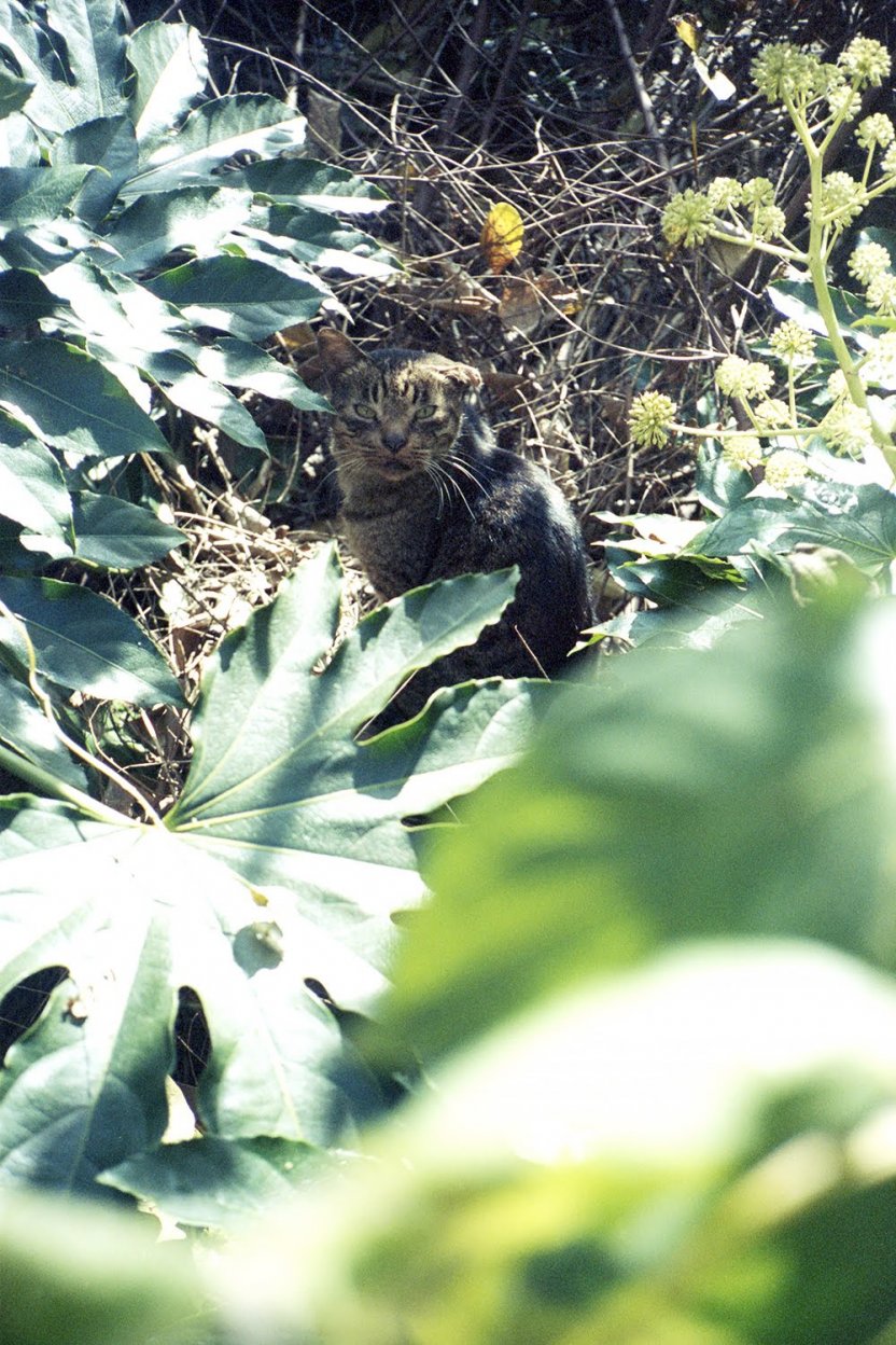 草むらの中に、神経質そうな猫がいたので近寄って撮りました。最短撮影距離の90cmまで寄りました。90cmというのはわりと離れているので、動物も逃げなくて良いなと思いました。近寄りすぎると警戒されて、すぐに逃げられちゃうので……。