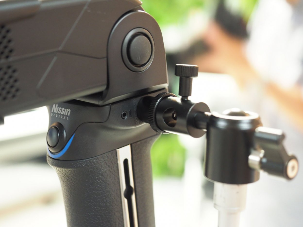 MG10は、カメラの上部に装着するクリップオンタイプではなく、世界で唯一のグリップ型ストロボとなっている。
