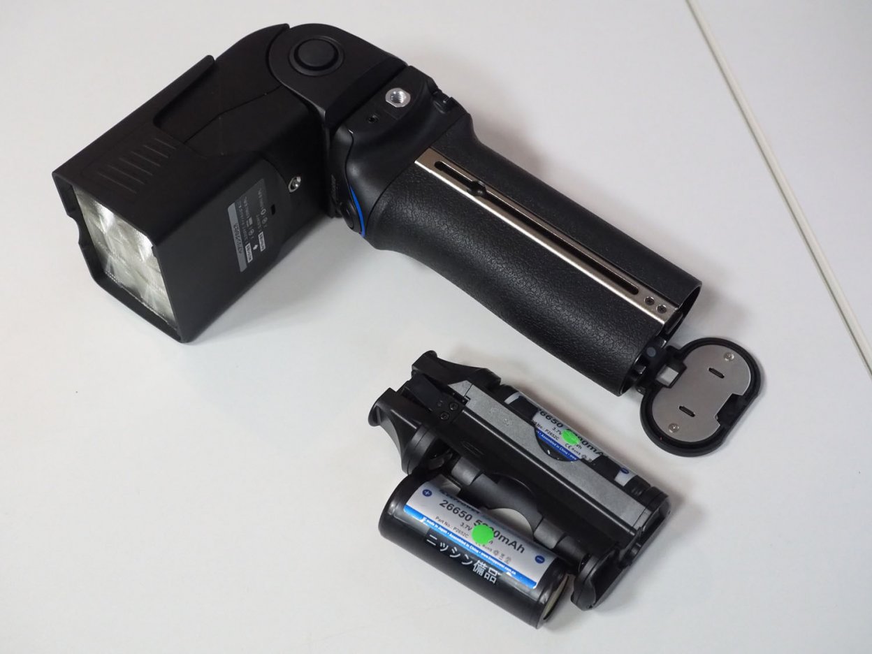 バッテリーは、26650タイプのリチウムイオン充電池、または単三電池8本を使用する。