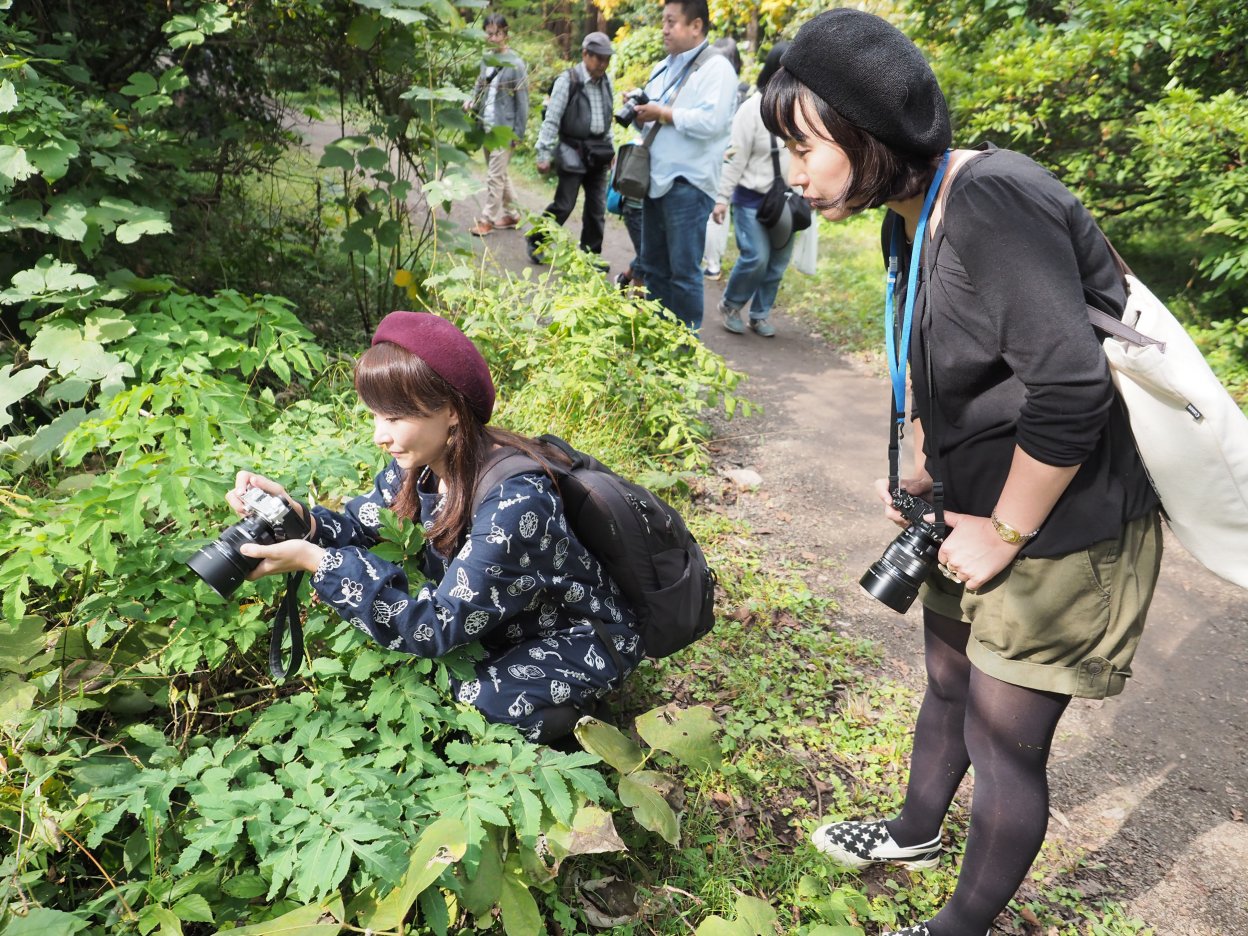 参加者は、大村祐里子氏と、OLYMPUS PEN-FとF1.2大口径単焦点シリーズを使い、植物園で自然風景を撮影した。