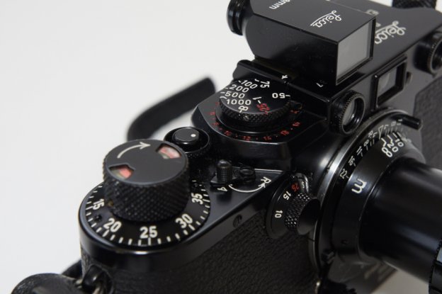 バルナック型LEICAの軍艦部のデザインが、黒塗りになることでさらに引き立たされている。
