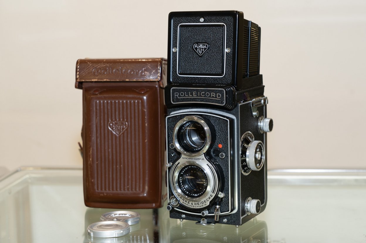 ローライフレックスの廉価版として発売された6×6判の二眼レフで、ローライコードVbはその最終モデル。撮影レンズはクセナー75mmF3.5。内部機構をローライフレックスよりも簡略化した一方で、絞りとシャッタースピードを連動させたライトバリュー連動式の露出機構の採用や、ピントノブの位置変更など継続的な改善が施されており、後の日本製二眼レフの設計にも影響を与えたといわれている。