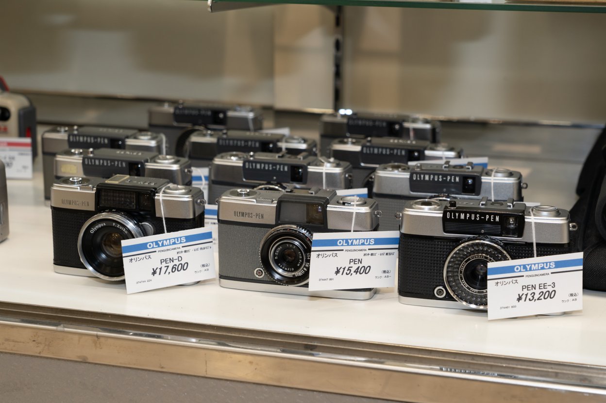 1959年に発売した「PEN」をはじめとしたハーフサイズカメラシリーズ。35mmフィルムを使用し、通常の2倍の枚数が撮影できる。小型軽量なボディに扱いやすい機構、入手しやすい価格などからハーフサイズカメラの流行をけん引した。代を追うごとにプログラムEEや内蔵露出計、より明るいレンズを搭載するなど、便利な機能が追加されている。