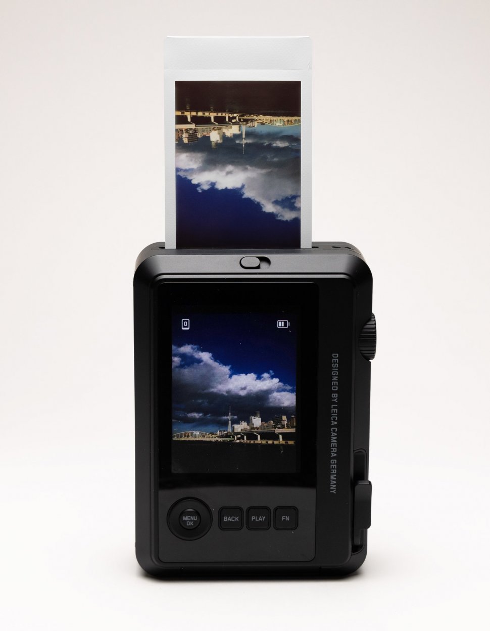 ただし細かくスペックを比べると、ホワイトバランスの設定項目がわずかに異なる。カメラの絵作りは、ライカ独自の味付けが加わっているものと思う。またデザインもクラシックカメラ風の「instax mini Evo」に対し、本機はシンプルでモダンなデザイン。手にするとプラスチック製ゆえに軽いものの、安っぽさは感じられない。上質なデザイン家電のようで、背面にあるDESIGNED BY LEICA CAMERA GERMANYの文字は伊達ではない。