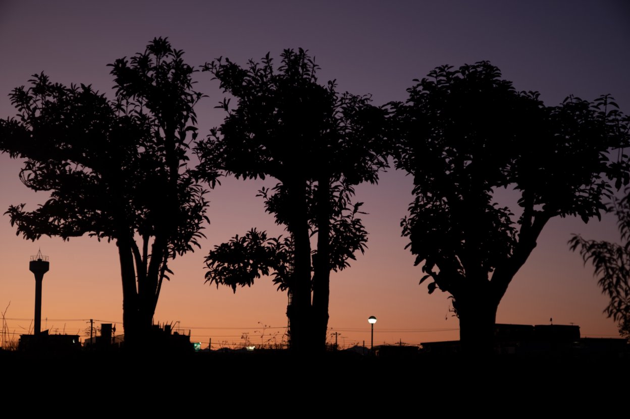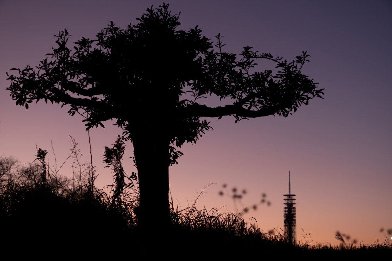 大きな木とスカイタワーのシルエットは、父子が対話しているように見えた。とんがった息子に父が何かを諭しているような、守っているような、そんなイメージが湧いてくる。実際は木の方が全然小さいのに、その存在感は全く逆に感じる。自然のフォルムはやはり偉大なのである。2本のトリプレット