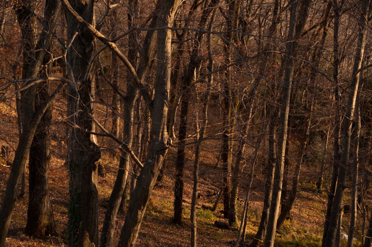確かに線の細い描写をするレンズだ。曇った空の下の重たい光の中、道の隅に溜まった枯葉のテクスチャーを浮き彫りにし、その物としての存在感は朽ちた動物の骨を僕に連想させた。死の形というのは似たような佇まいを持っているのだろう。さておき、この条件下での質感表現はなかなかのものだ。心の切り絵夕方、風景が切り絵になっていくタイミングでM10-Pにトリプレットエルマーを付け外に出た。