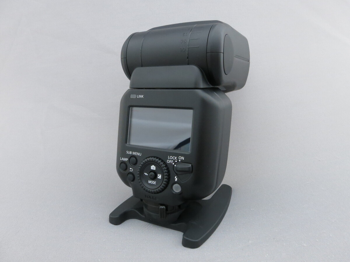 高度な通信機能を備えた「マルチアクセサリーシュー」を搭載した「EOS Rシステム」のミラーレスカメラ用外部ストロボ 現状渡し、外観多数スレあり、外観キズあり |