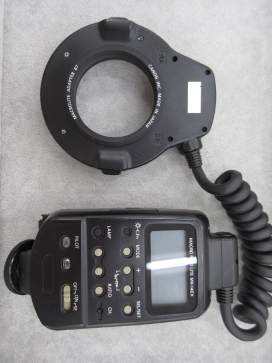 E-TTL自動調光対応の接写専用ストロボです 現状渡し、外観大スレ・大キズあり |